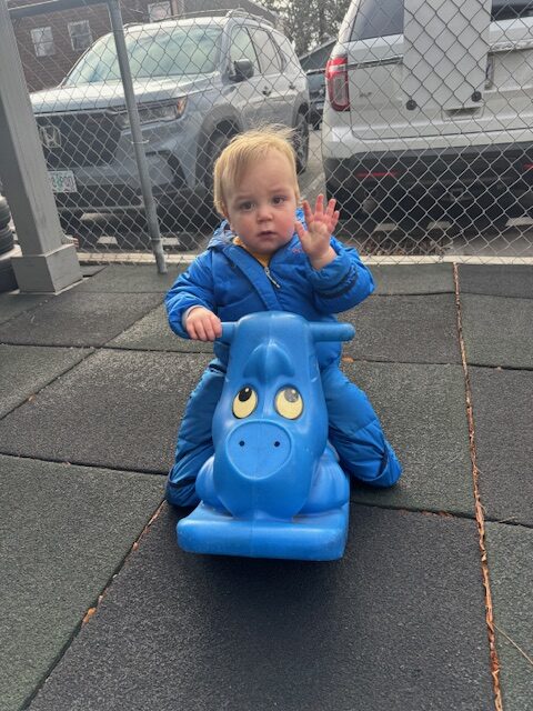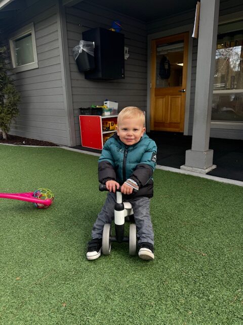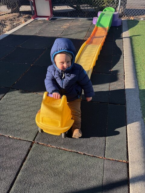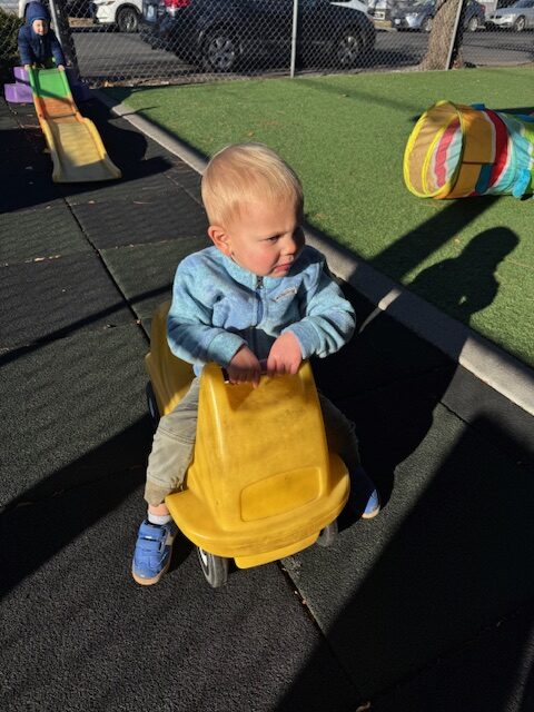 Theo is discovering all the new places he can explore. He enjoys making new friends and confidently engages in both social and independent play.