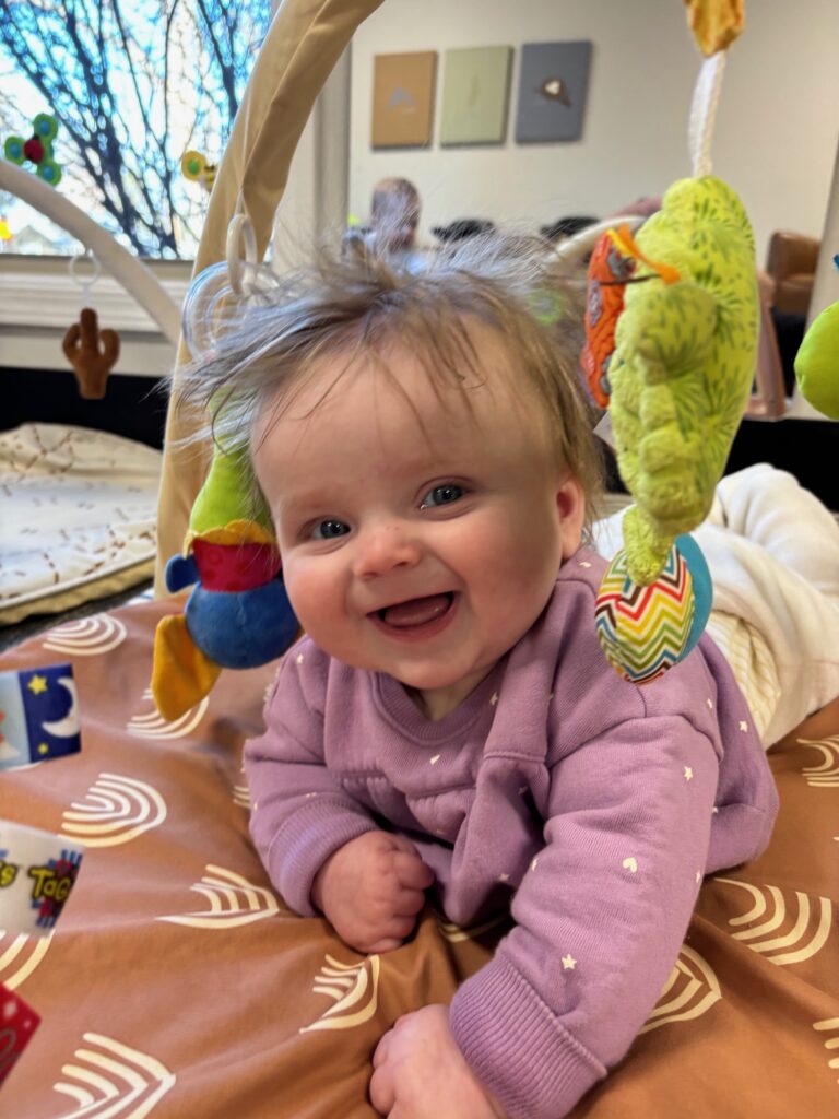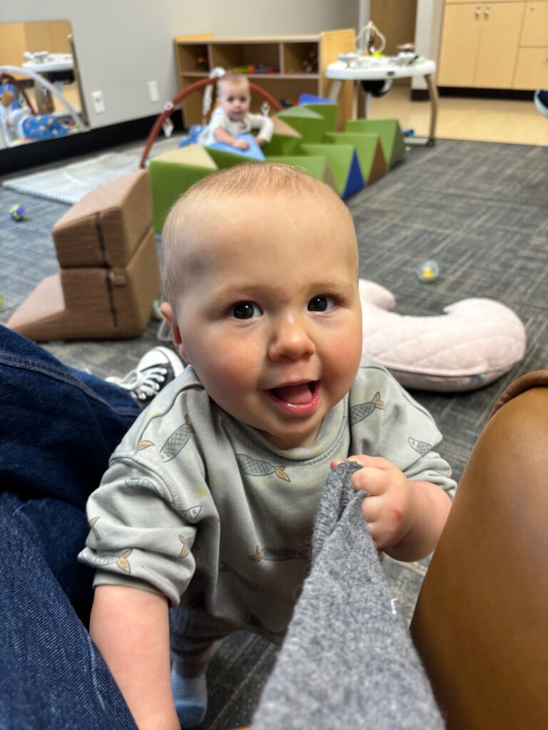 Luke has been giggling and showing off his voice during play– he loves to babble!