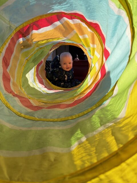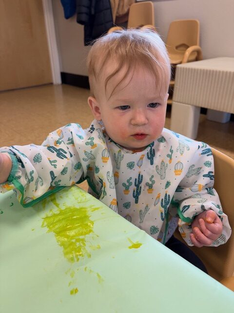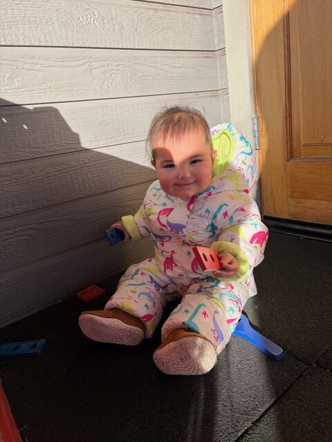 Ren enjoys exploring cause and effect by throwing objects and listening to the sounds they make. She has been pulling herself up more and moving around the classroom with growing confidence. Ren is also communicating her needs more clearly and is feeling comfortable in the Big Seed room.