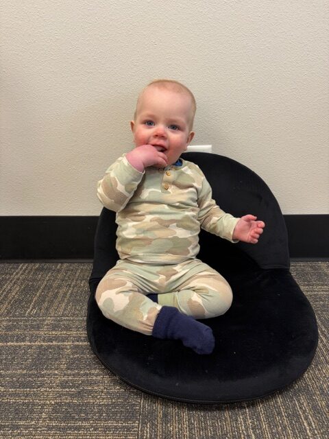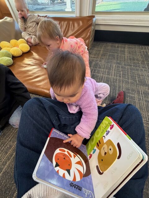 Hudson enjoys spending time in the reading corner and shows a love for books. He has been repeating many words. He is also standing and taking steps while holding onto shelves, exploring the classroom with curiosity and confidence.