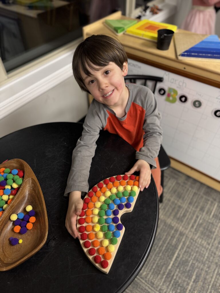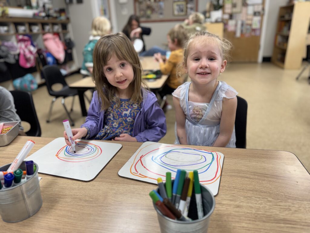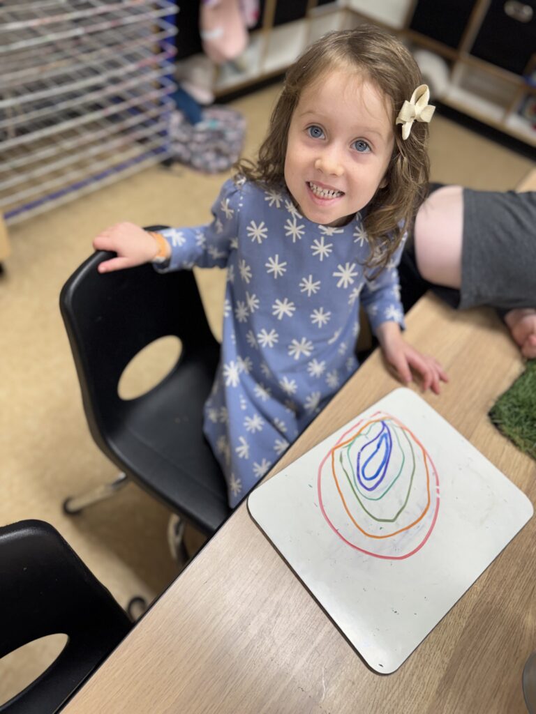 Where do we start? March turned out to be a busy month! It was tough to fit in all the learning activities and art projects we planned, but we managed it. We kicked off our “Rainbows, Rhymes, and Emotions” study with RAINBOWS! As we began our discussion, we talked about rainbows—their colors and shape. Each month, we start by making a self-portrait, and this time, our Branchers added rainbow borders around theirs. This helped reinforce their new understanding that rainbows are not arches but actually circles. From the ground, we see only an arch, but if we were in the sky, we would see a full circle. We also enjoy watching their fine motor skills develop as they practice drawing themselves, adding more details each month. Their beautiful drawings brighten up our classroom!