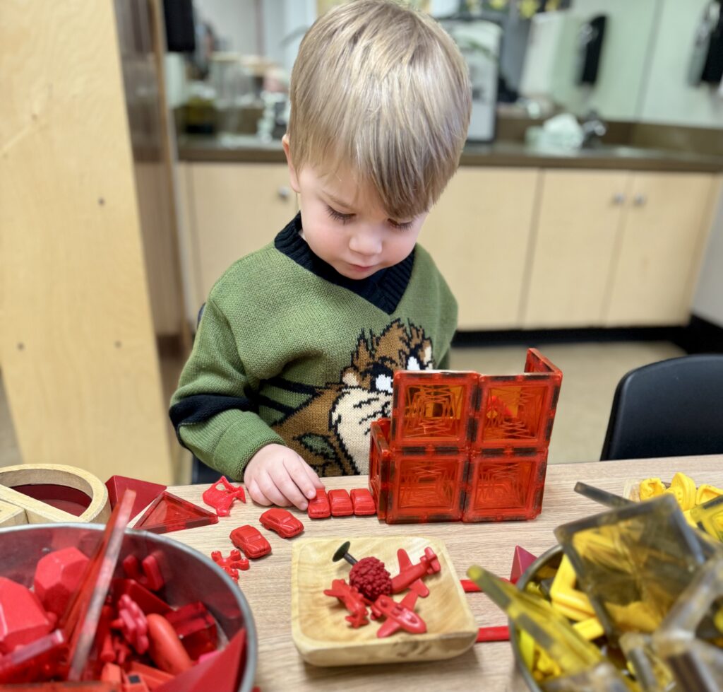 In the Branch room, we enjoy incorporating math into our learning. This month, we explored graphing. Branchers are already familiar with voting on books to see which one has more votes, so this time we voted on our favorite color of the rainbow. We placed the votes on the door so we could easily see which color had the most. Purple received the most votes with eight, and red had the least with just one. The Branchers quickly understood the concept of graphing and were proud to see their votes displayed.